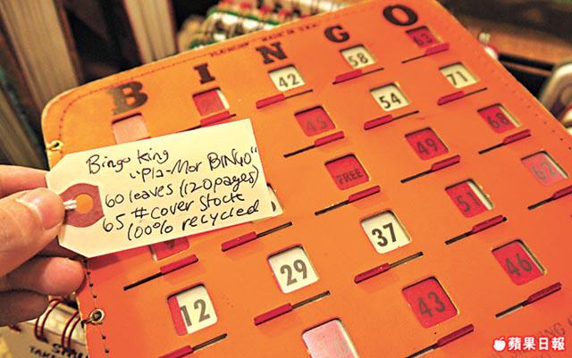 市集中最有特色的作品,就是Hymo的記事簿,她向不同廠商買來四五十年代的紙版遊戲卡底板,如第一代大富翁、Bingo、Scrabble等,將底板改裝成筆記簿。原來第一代大富翁是用木質彩色棋子;Bingo卡板有小紅窗看數字,勁Grand!將它們也掛在筆記簿上,連同遊戲故事背景,每件都重拾被遺忘的往昔故事,阿媽輩見到實笑住講到唔停口。