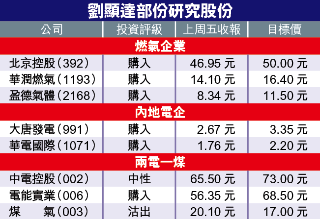 同樣派息穩定的「兩電一煤」比較又怎樣呢?劉顯達表示,中電(002)、電能實業(006)及煤氣(003)確實是派息穩定,於股市大幅波動下是一個理想的「資金避風塘」,惟相對內地燃氣股,則缺乏增長空間。