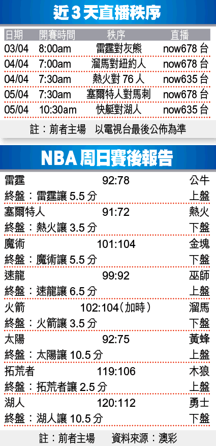 相反,熱火在明星賽後狀態起伏不定,連同今仗累積10勝7負;而今戰除了首節領先過4:3後,就被綠軍打出10:0的攻勢,一直處於落後至完場。熱火於2010年組成三巨頭,望以獲迪、占士及保殊的火力橫掃聯盟,可是今仗卻觸礁;除了「大帝」發揮算正常,全場攻入23分但0助攻,是他加入NBA第2次單場沒有助攻。