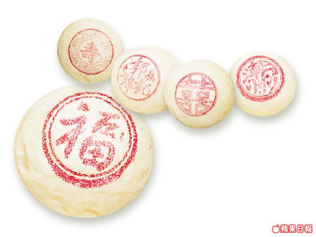 郭師傅從月餅盒拿出珍藏印章,原來除了「平安」二字,還有「福」、「壽」、「囍」等好意頭的印章,但只在客人特別要求下才會使用。