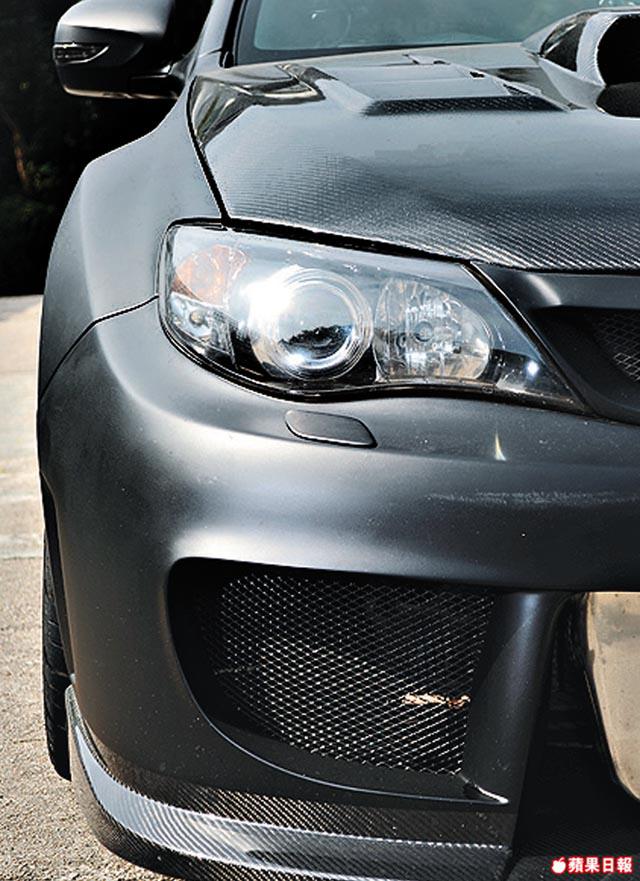 近年日本的富士揭背跑車產物,外形都與傳統三廂式跑車相去甚遠,既可舒適載五人又加上售價吸引,故此成為不少年輕傳統跑車玩家的換車首選。在外形上,今代WRX依然予人一份濃烈的跑車味道,特別是它那拋沙板揭背設計,是廠方一項史無前例的傑作。車主再為此車改裝的碳纖維頭唇、頭冚及裙腳,與一身TopMixBodyKit相襯,將車身的辛辣感覺連貫起來。車尾方面,誇張的高置尾翼配合暗黑LED尾燈,與頂部的橫置碳纖擾流器整合起來更惡相,而且大口徑HKS尾喉與兩旁裙腳分外匹配,令此車賣相顯得格外辛辣。