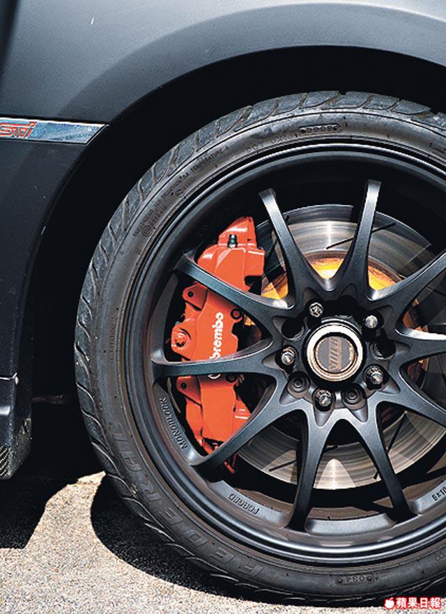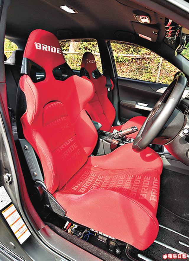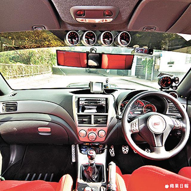 在車廂方面,這部WRX換上了一對火紅色BrideCarbon桶椅,可以輕易調校出合適的個人化坐姿,包承性固然更勝原裝。同時,儀錶板亦加上大量碳纖與磨砂金屬飾板的配搭,氣氛又cool又充滿辣味,而且又不失時尚感,還有頭頂一系列Defi多功能顯示錶,包括機油溫度、水溫及燃油壓力等資訊通通清晰顯示,既將賽車化充滿戰鬥格的意味引入,又可將賽車實而不華的優點結合起來,令車廂高級感提升。
