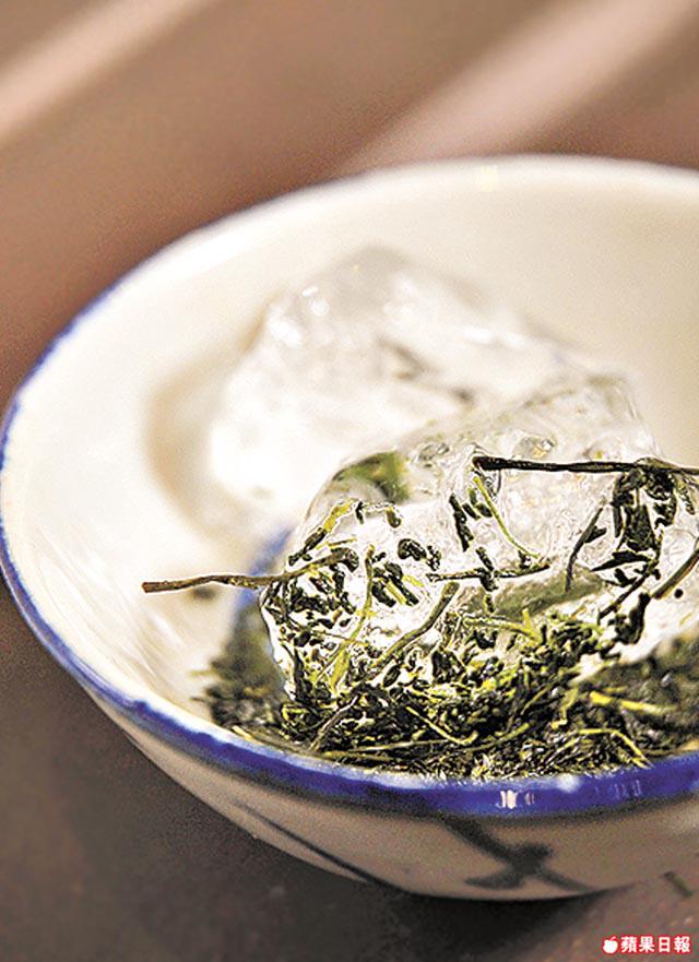 日本綠茶葉細嫩,想品嚐更原味的凍茶,可在綠茶中加入原粒冰塊,讓其自行溶化,溶出的茶湯份外清甜甘美。