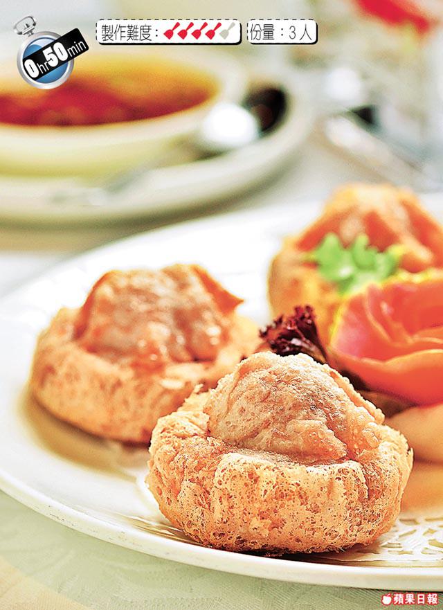 5. 燒滾油至130℃,放入蟹盒,浸4至5分鐘上碟即成。