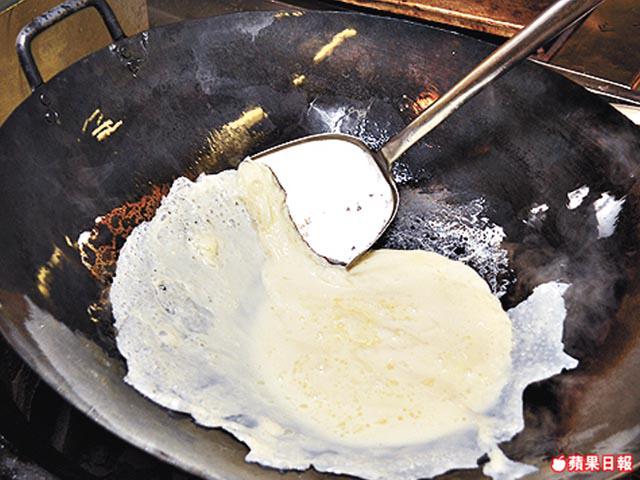 大良炒鮮奶要剛熟才會嫩滑,不可以煮太久,秘訣是搖鑊後,鏟走剛凝固在鑊邊的鮮奶,非常考工夫!