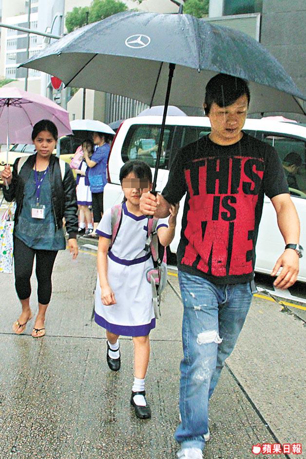 陳奕迅(Eason)現於英國舉行巡迴演唱會,徐濠縈日前亦專程到英國陪老公開騷,夫婦二人雖然未能親自接送女兒康堤返放學,但也加派司機護送愛女。昨日下午,Eason司機接載女傭抵達佐敦女拔萃小學,過往其司機只是在車內等候,由女傭入學校接康堤,但昨日所見,司機不但落埋車與女傭一同接送,而且離開學校時更與女傭一前一後傍實康堤,可見Eason夫婦加強保護愛女措施。不過,康堤似乎冇有怕,一味笑騎騎,然後偕司機等人上車離開。
