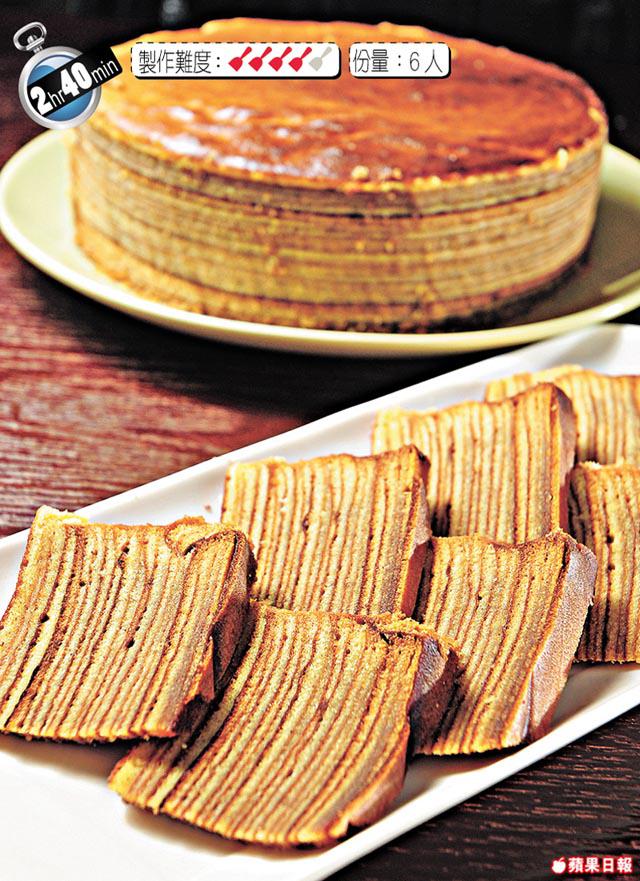 做千層糕非常費時,因為要焗好一層後,又鋪另一層,逐層逐層慢慢焗,最少也要有十多層!