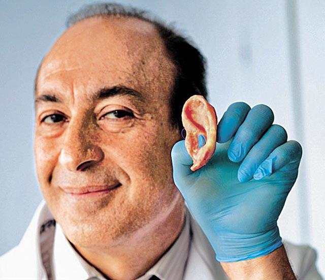英國倫敦大學學院(UCL)納米科技及再生醫藥學系教授塞法利納(AlexanderSeifalian),在實驗室中展示以先進科技培植出來的全球首個人工耳和人工鼻,以及用於製造人工器官的玻璃模,更笑言這裏是「人體器官零件工場」。