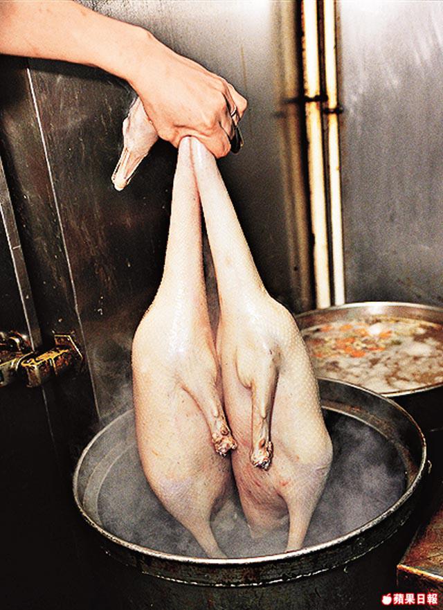 上至老年人,下至八九十後,提起鵝,就想到燒鵝。年輕人愛其美味,老一輩的人總覺得以前的燒鵝較美味,為甚麼呢?全因當年的鵝隻,都是活生生運來,深井裕記負責人說,燒鵝要做得好吃,選鵝也很重要,「要選頭手鵝,揀完即斬即劏,剩低的鵝會嚇親,驚到食唔到嘢,自然無咁好食。」加上炭爐燒,更別具風味。可惜,自禽流感一疫,香港由中央屠宰到後來暫停活鵝供應,令這味道消失了,除了因冰鮮鵝少了鵝膻味,更大元兇是中西方都為了養鵝肝,把鵝困在籠裏,一天三次餵食,養肥鵝肝,鵝卻老了,八九斤的鵝,鵝肝佔去一半重量,皮韌肉削。