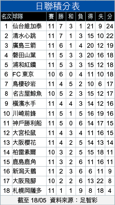 日聯「1哥」仙台維加泰周六迎戰開季表現麻麻的名古屋鯨魚,信他們可結束3場不勝走勢重開勝門,平手值捧;另外,基於他們半場與對手少交收,兼取[半細]。(球賽編號:星期六8;now631台今日5:30pm直播)