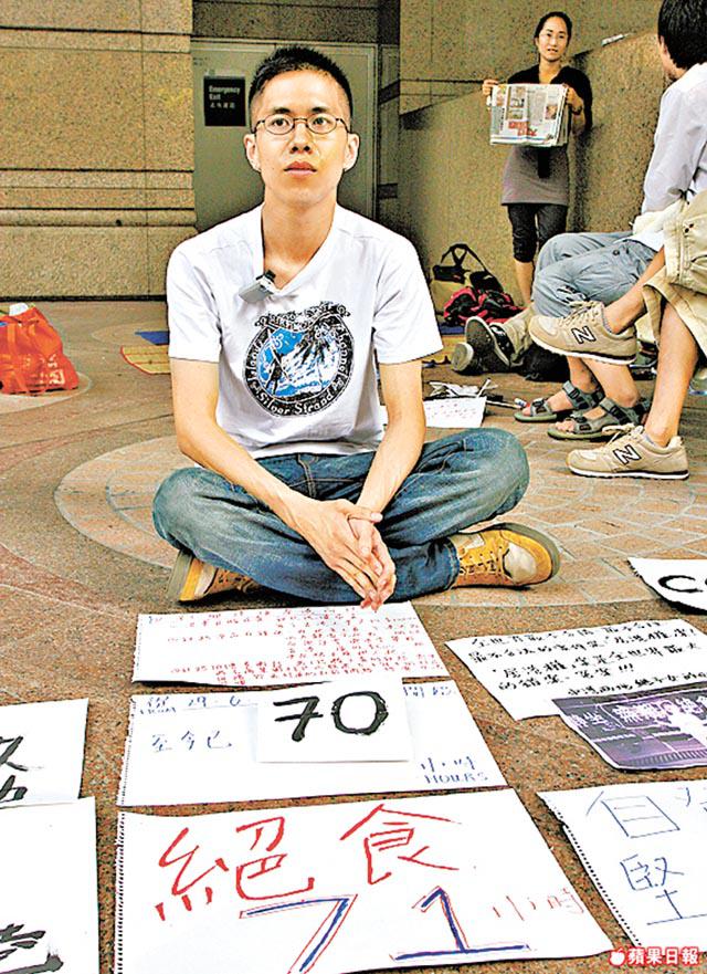 於時代廣場發起絕食71小時行動,結束後,他表示,想食碗粥。