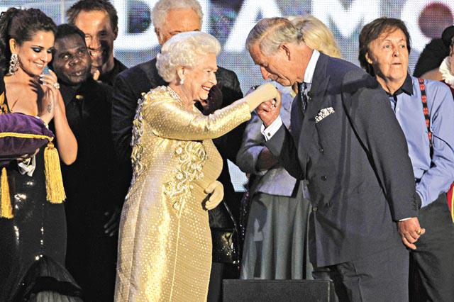 英女皇伊利沙伯二世登基60周年鑽禧四日官方慶祝活動,昨日(周二)隨皇室成員乘馬車巡遊、在白金漢宮露台向民眾揮手,寫下壯觀句號。在前晚的白金漢宮鑽禧音樂會上,在群星拱照下,皇儲查理斯向母親致敬、親吻她的手,更率領大不列顛子民高呼「HipHipHurray」(萬歲),場面感人。