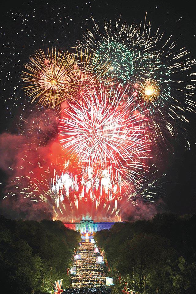 他又對父親因病入院未能到場表示遺憾,但仍幽默地說,若民眾歡呼聲夠響亮,父親可能會在醫院聽到,民眾隨即大叫「菲臘!菲臘!」,女皇顯然深受感動。查理斯更帶領民眾三次向女皇高呼「HipHipHurray」,又親吻她的手,罕有展現親蜜母子情,逗得女皇笑逐顏開。女皇燃點國烽火,寓意團結,之後白金漢宮燃放璀燦煙花,為音樂會寫上完美句號。