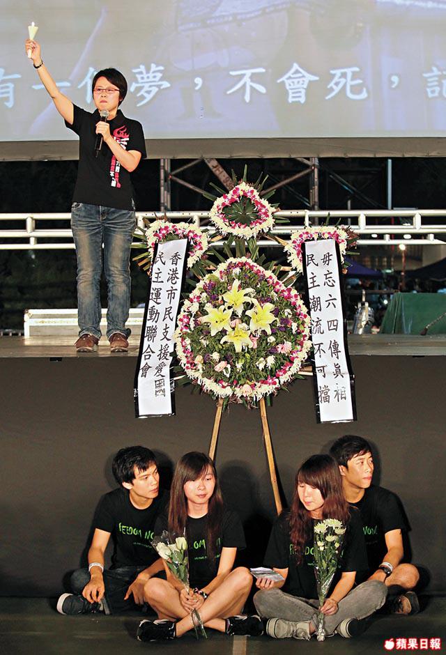 【本報訊】候任特首梁振英23年前公開譴責中共血腥屠城,今日為求討好中共,對港人平反六四訴求充耳不聞、絕口不提。昨晚六四燭光集會中,台上台下無不怒轟梁振英可恥、埋沒良知、擔心他上任後會打壓港人悼念六四的自由。支聯會主席李卓人在集會上向梁「宣戰」,表明已做好迎戰打壓的準備:「梁振英,你即管放馬過嚟!」記者:陳雪玲、林俊謙、張文傑