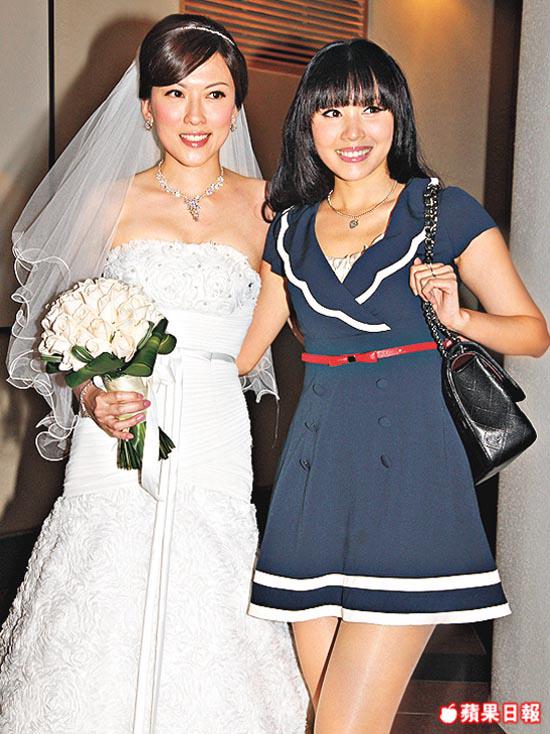 江芷妮近年退出幕前從商,昨日跟拍拖兩年的建築師男友Derrick拉埋天窗,一對新人在尖沙嘴洲際酒店筵開13席招呼親友,並即場在婚宴中註冊,讓親友見證他們的幸福,人妻羅泳嫻單拖到賀。