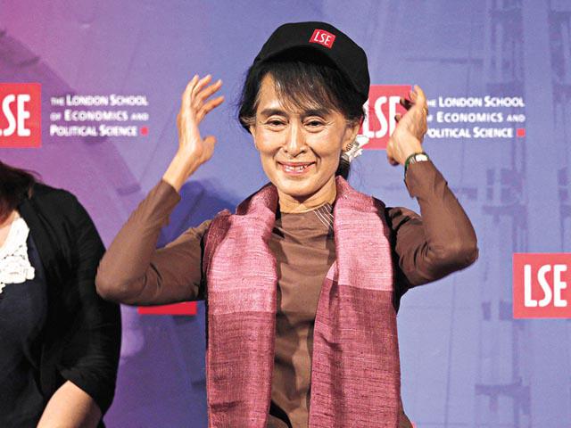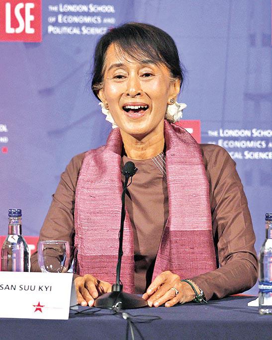 闊別24年,再見英國,髮絲開始花白的昂山素姬,笑容燦爛,難掩內心喜悅。她在英國會逗留4天,昨日頭陣先到倫敦經濟學院出席辯論會和發表演說。她上台時全場起立鼓掌致意,而辯論的主題是緬甸如何能邁向法治。