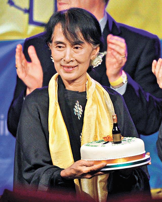 昨日是昂山素姬的67歲生日,倫敦經濟學院特別給她送上她父親、昂山將軍1947年訪英時的照片,作為生日禮物。她接過照片,笑逐顏開,校方相信她未看過這照片。
