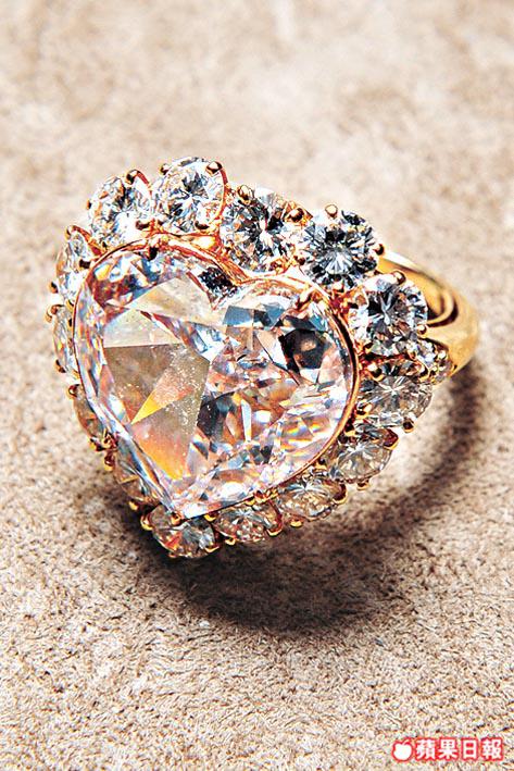 這枚由14顆圓鑽包圍、重15.57卡心形粉紅鑽戒,與電影《鐵達尼號》(Titanic)的「海洋之心」巨型藍寶石頸鏈有異曲同功之妙。粉紅鑽本身的可愛,自然而然令人傾心,加上心形切割散發的浪漫感,令人愛不釋手。