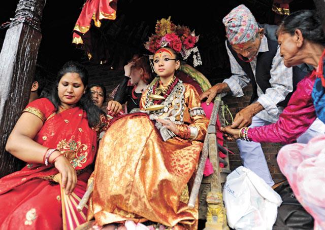 尼泊爾女童巴杰拉查里亞(SamitaBajracharya)年僅10歲,已貴為印度教活女神庫瑪麗(Kumari)。她周日出巡,罕有讓傳媒拍攝,揭開她的神秘面紗。