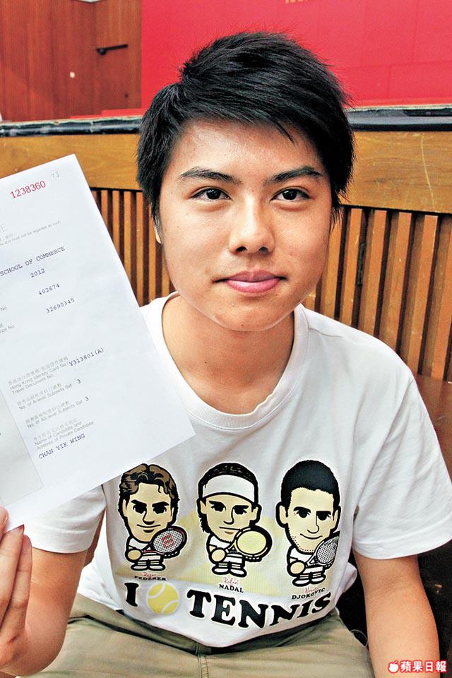 將軍澳基督教宣道會宣基中學5A狀元陳享說,讀書令他明白「人無信而不立」,他雖對政治不感興趣,但眼見很多人都質疑當權者誠信有問題時,「即使7月1日打風都會上街,表達對政府嘅不滿」。