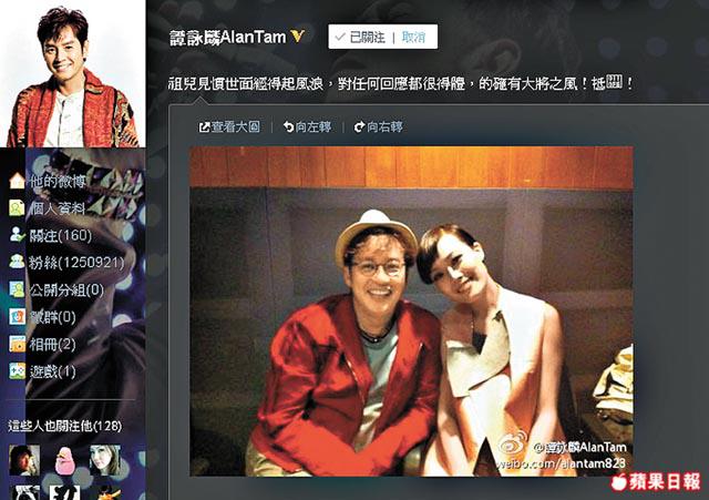 【祖師戀之為愛爭氣】驚爆戀情的容祖兒和劉浩龍成為城中熱話,男方被網民狂插封「流毒膿」,日前譚詠麟更搞笑地指佩服劉浩龍可以拗直祖兒,但阿倫昨日即在微博補鑊大讚祖兒。昨日在九龍灣現身的祖兒似乎發覺戀情不被看好,男友更成眾矢之的,難怪她坦言希望得到眾人的祝福。