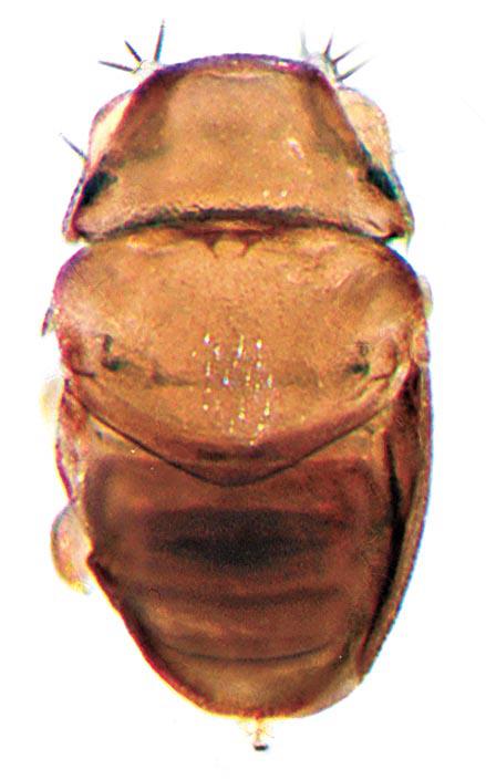 這種可怕蒼蠅學名叫Euryplateananaknihali(圖),是蚤蠅(Phoridae)的一種,體形是普通家蠅的1/15。不要小覷這種蒼蠅的殺傷力,牠通常在螞蟻體內產卵,卵化成幼蟲後開始蠶食螞蟻的頭顱,慢慢將螞蟻頭顱掏空,直至蟻頭甩掉,即使小螞蟻的頭只有0.5毫米大,也難逃斷頭厄運。