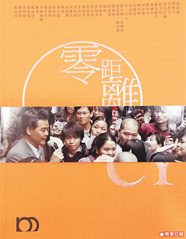 明報出版社推出《零距離接觸CY》,由梁營競選辦公室主任羅范椒芬、張震遠、梁太唐青儀、前候任特首辦項目主任陳冉及洪綺敏等30多人執筆撰寫,定價58元再8折,放在書展人流最旺的路口位。