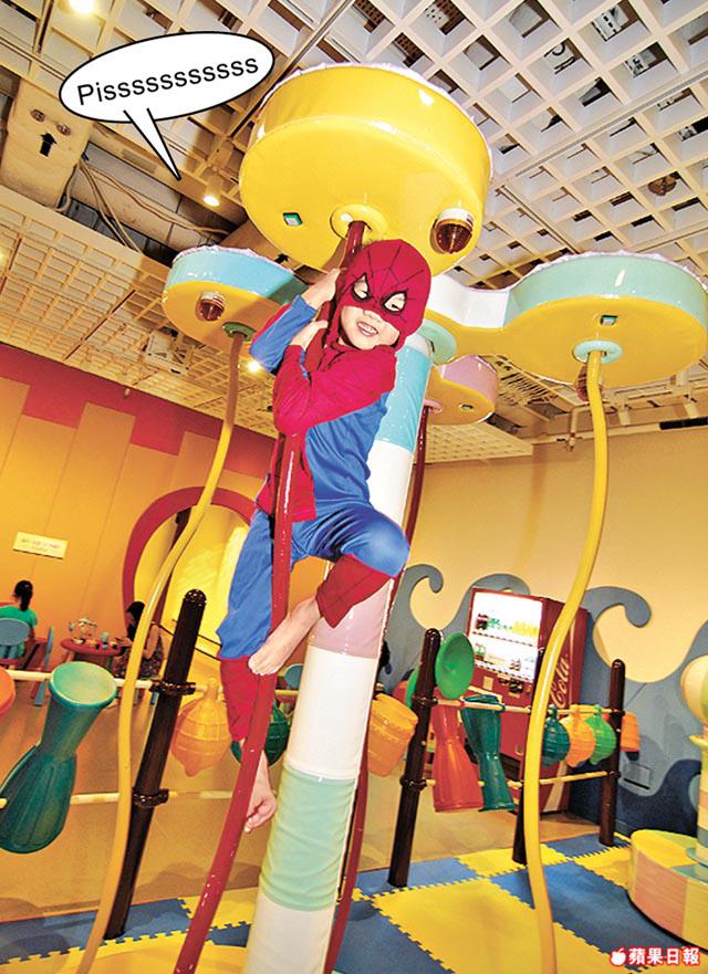 童樂島,食字食得這麼明顯,當然是專為小朋友而設,初以為只屬一地玩具的一般託兒部,誰知是個鋪滿軟墊的小樂園,五顏六色的海豚及波波池,好可愛哦!連架子上的玩具都是新簇簇的,最有趣是附設的星夢劇場,堪稱小朋友的「變身間」!灰姑娘、美女與野獸、胡迪、超人、蜘蛛俠服裝任換!本來安靜的Jasper換上蜘蛛俠服裝,即時興奮得滿場飛!另一邊則是遊樂天地,放滿多部最新的電子遊戲機與夾公仔機,只要付MOP68入場費,兩個樂園設施全部任玩。最正的是,園裏有個通曉所有遊戲規則與秘技的Fu伯,玩掟波波時,這個笑口噬噬的樂園管理員比我們更緊張,見我們笨手笨腳更出手相助。Jasper玩了兩小時累極而返,Yennie雖然是大人,但也笑到兩頰肌肉抽筋。