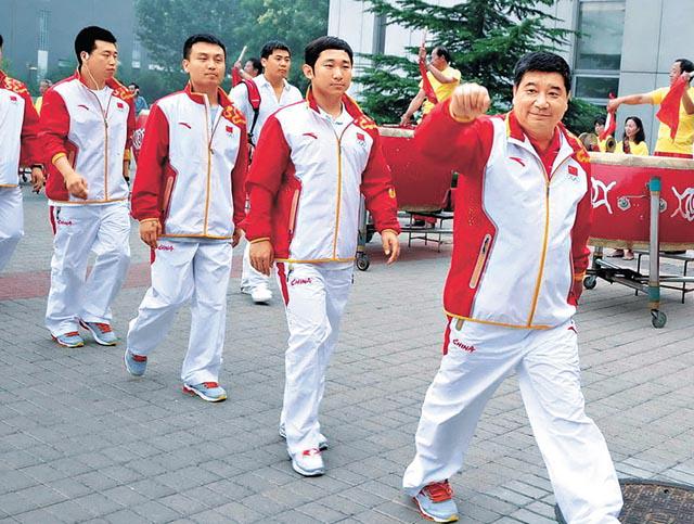中國射擊隊由教練王義夫(右一)帶領下,包括龐偉(左一)等名將,周六起行出征倫敦奧運會。互聯網