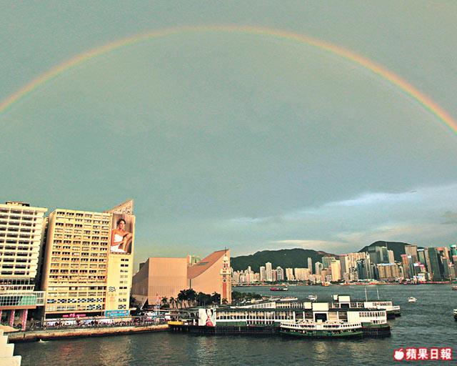 暴雨後維港上空現彩虹