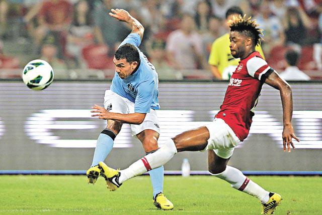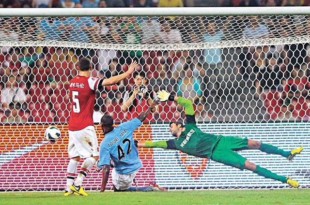 兩支英超球隊曼城及阿仙奴,周五於北京鳥巢合演季前熱身賽;賽事於滂沱大雨下進行,結果曼城於上半場已攻入兩球,以2:0勝出。文:青蛙仔