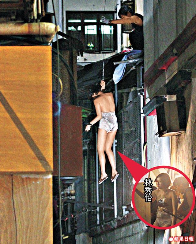 林秀怡昨日在電話中說:「拍攝前用膠紙將上身黐到成件衫咁,下身就着肉色打底褲,最初拍時都有啲尷尬,但吊上半空已經唔記得。」林秀怡坦言覺得不需用替身,她希望今次突出表現令她得到更多機會。