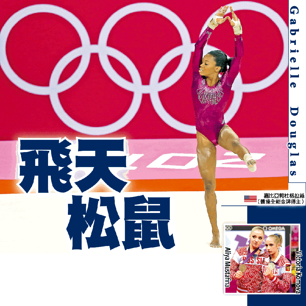 外號「飛天松鼠」的美國體操選手嘉比亞莉杜格拉絲改寫奧運歷史!這名16歲女孩周四於女子個人全能決賽封后後,成為首名贏得該項個人殊榮的黑人運動員,同時亦是首個包攬女子團體及個人全能兩金的選手。