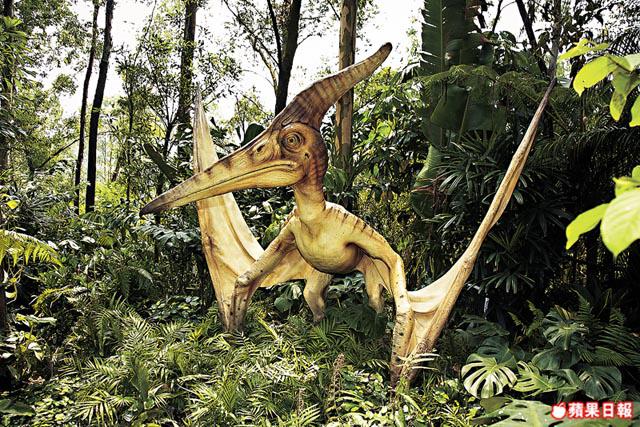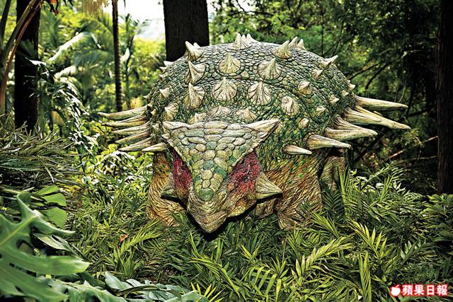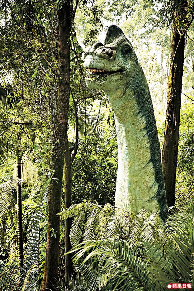行行重行行,沿路不時發現來自侏羅紀(約1億9,960萬年前至1億4,550萬年前)及白堊紀(約1億3700萬年前至6,550萬年前)的恐龍,管理員逐隻講解:「樹叢裏,有隻無齒翼龍會張開長三米的翅膀,草叢裏,有長頸腕龍滿嘴樹葉探出頭來……」雙脊龍對着攝影師狂叫,可惜無人理會,怒得突然噴出水柱扮毒液,淋得攝影師一身濕,認真大整蠱。
