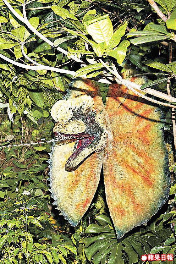 就像穿過多拉A夢那閃閃星光的時間洞,一走出來,滿眼參天巨木及由泥盤紀時期(距今約4億800萬年前至3億6,200萬年前)已出現的蕨類植物。密林悶熱,攝影師大汗叠細汗,Ayani熱得失去正常判斷力,忽見樹叢有隻眼仔睩睩的禿鷹,「睇吓啲羽毛,擰頭動作好真,好堅喎。」話口未完牠伏一聲跳落地,是隻活生生的真禿鷹!樹林裏真假動物掩掩映映,不時有驚喜!
