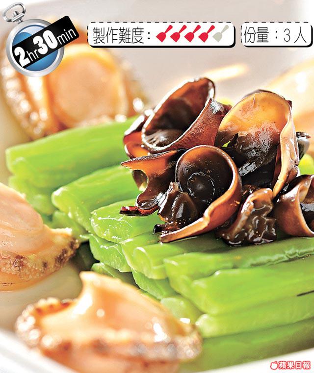 木耳100克、凉瓜(切片)200克、九頭鮑魚6隻、上湯500毫升