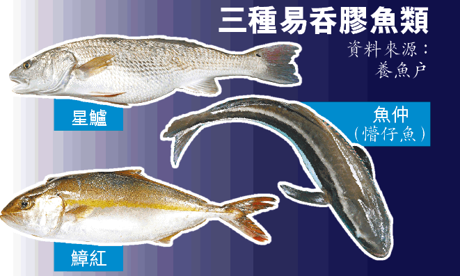 本報記者在林鄭月娥巡視前,到過同一魚排了解,養魚戶張基即場劏了兩條「反肚」的星鱸魚,其中一條內臟擠出六粒膠珠。他說,星鱸與魚仲愛游近水面覓食,最易誤吞膠粒,石斑多留在深水位置,食膠風險較低。其養殖場的魚主要供應香港仔批發市場,再轉售予大型超級市場,發生膠粒事件後,生意額由每日2萬多元暴跌至3,000元,跌幅逾八成。