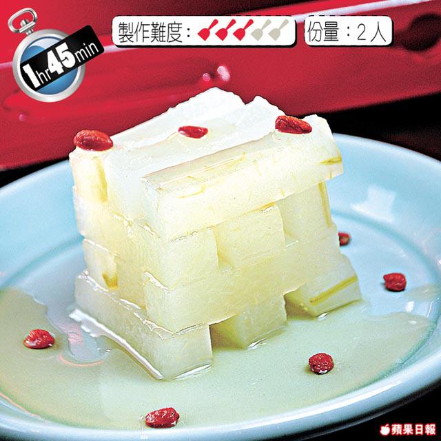 將冬瓜蒸至半透明,浸入話梅醋中,入口酸酸哋,夠晒開胃,不過蒸冬瓜時切勿蒸太久,否則煮過腍便失去口感。