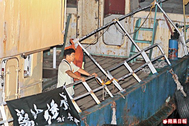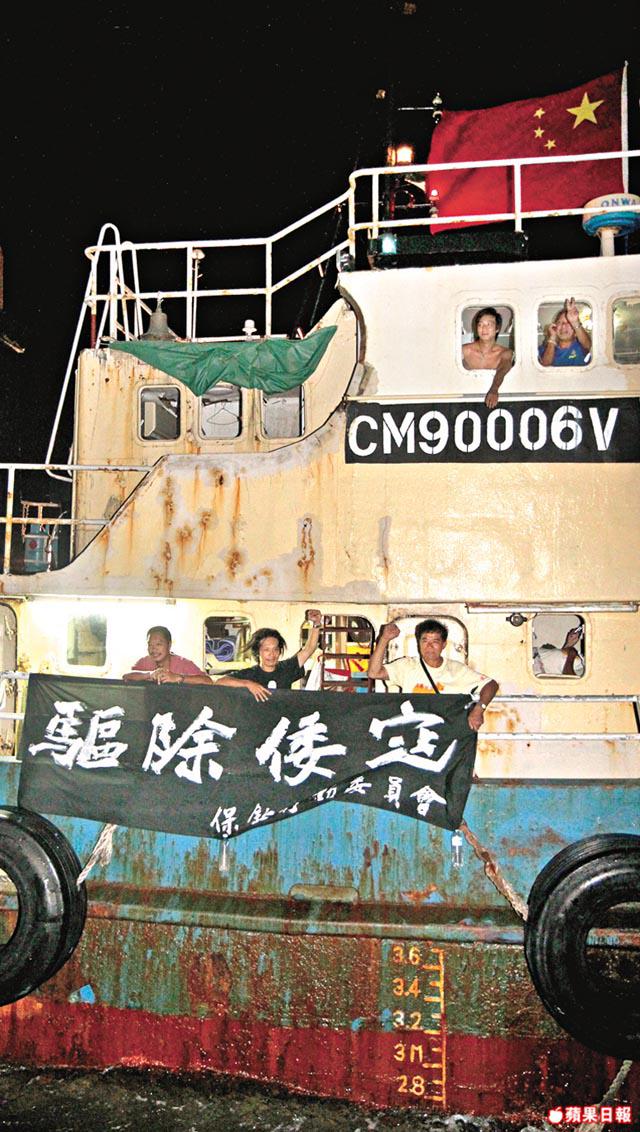 現場所見,啟豐船頂掛起五星旗,欄上掛着一塊寫有「驅除倭寇」的橫額,上周三(15日)搶灘登陸釣魚島時被日本艦隻左右夾擊而撞毀的圍欄仍清晰可見。楊匡向前往採訪的記者說,心情十分興奮,想立即翻看連日來的保釣行動報道,「呢次係成功,十幾年先做到呢件事,想知華人社區反應幾大」。