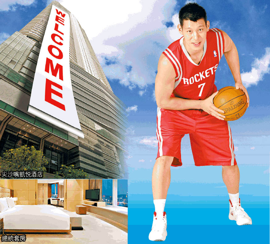 即將24歲的J.Lin,先後到訪台灣及中國後,今日將由東莞前來香港。據了解,他將會下榻凱悅酒店,盡覽維港景色,認真識嘆。記者致電該5星級酒店查詢房價,負責人表示豪華海景套房一晚要4,700港元。不過有球星入住,酒店隨時會讓林書豪住得更舒適,或會升級讓他入住一晚索價20,700港元的總統套房。