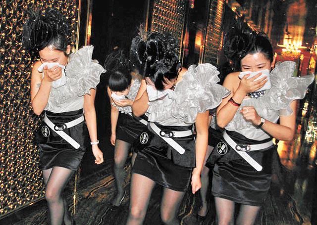 浙江溫嶺有KTV會所前日舉行消防培訓課程,消防員到場指導300多名職員防火知識。當日,一眾身穿露背裝、短裙及黑絲襪的KTV女侍應們,實地演習火場逃生和滅火技巧(圖)。