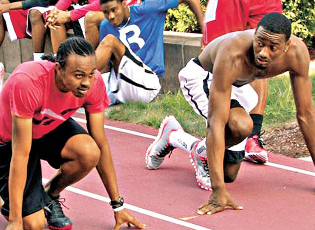 喺奧運贏金牌真係真材實料㗎,相信NBA巫師後衞禾爾(右)就最清楚啦!佢同塞爾特人後衞泰利、魔術後衞謝美尼爾遜等,日前齊齊出席球鞋贊助商既籃球訓練營,同場仲有喺倫敦奧運贏得110米欄金牌既美國選手米列特(左),同呢班以速度聞名既NBA後衞切磋一下,分享下提升速度等經驗。米列特被「挑機」當然少不了,但話晒米列特以12秒93奪金,今次冇欄喺度贏得仲輕鬆,搞到禾爾「挑機」唔成變食塵,認真慘情囉!