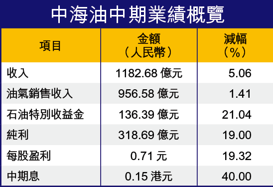 中海油不僅多番強調對收購信心十足,更以「行動」來表明心跡,將中期息削減四成至每股0.15元,以保持資金收購尼克森及增加資金靈活性。券商Jefferies發表報告稱,雖然已預知中海油未來會減派息,但減派息的決定來得比預期早,特別是中海油目前財政狀況仍然穩定。