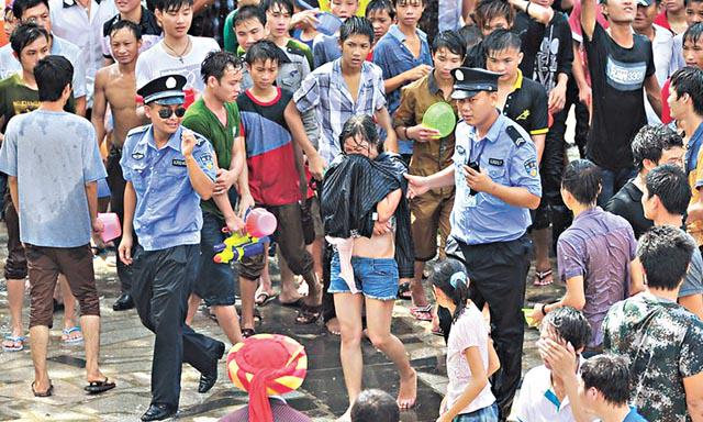 海南嬉水節驚變色狼獵艷盛宴!保亭縣一年一度的「中國海南七仙溫泉嬉水節」,昨日上午8時30分在保亭黎族苗族自治縣七仙廣場開幕。但嬉水狂歡開始後不久卻變成荒淫鬧劇,數十名女性慘被幾十名男子按倒在地上大肆性侵。不少年輕女子被強行扒掉衣服,遭多人胸襲性騷擾,有人更被撫摸得全身通紅。