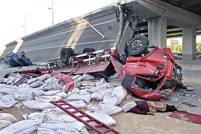 據現場目擊者指,昨晨約5時半,出事的引橋突然整體傾斜,猶如電影慢鏡頭般,緩緩倒塌,倒塌橋長達130米,當時經過橋上的四輛貨車從30米高的橋面砸落地面,整輛車變形損毀,致兩人當場死亡、六人受傷,其中一人送院後不治。現場一片狼藉,血迹斑斑,兩名死者屍體一度陳屍路邊,許久才抬走。
