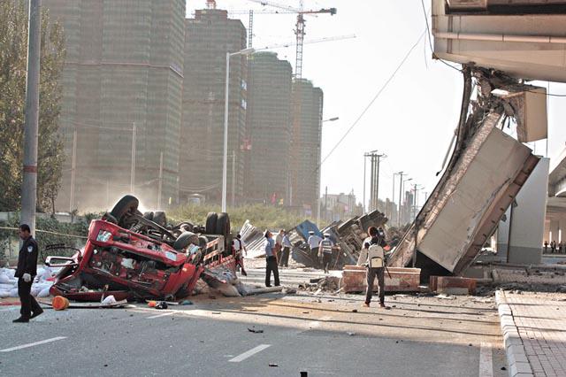 內地又現豆腐渣工程!東北哈爾濱一條建成未夠一年的高架橋昨突然倒塌,導致三死五傷,成為內地又一宗只求發展速度罔顧質量的奪命慘劇。更令人譁然的是,當地官方通報事件時,竟將事故原因推到經過的車輛「超載」上。國家安全生產監督管理局發言人則指,大橋建成一年不到即塌,質量「肯定有問題」。網民籲當局嚴查這條耗資18.8億人民幣(約21億港元)的大橋是否存涉貪腐。