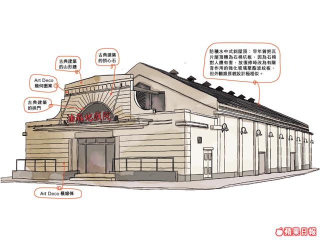 建築物料:主要由木材、花崗石及磚塊建成,相對於較華麗的利舞臺、平安戲院等以鋼筋混凝土建成,成本較低,注定走平民路線。