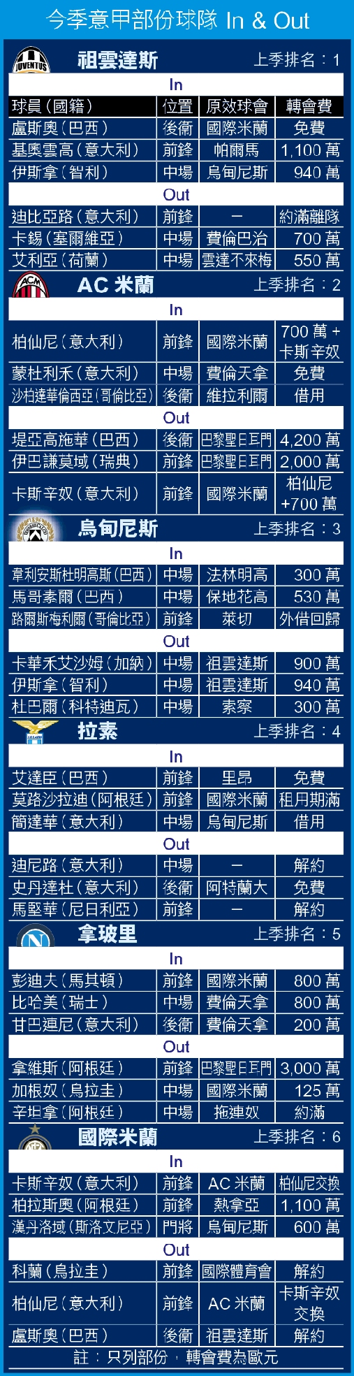 轉會交易新瓶舊酒