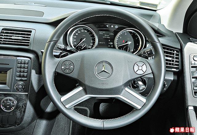 平治於05年首推七人車R系列,反應只屬一般,自2010年小改款後,將R-Class面貌拉闊變方,跟E-Class相近的家族面譜逐漸吸引更多車主換車。能由以往幾乎只有日系獨霸的七人車市場分到一杯羮,R-Class總有它的本錢,至於可否站穩陣腳,上星期借來一架平治R300L長測幾日慢慢試真。相信R最表面優勝之處是它低車身和流線豪房外形,爸爸Buy型,小朋友上落都方便。當然無電趟門設計會無咁實用,但要靚就要有所犧牲。達5,157×1,922×1,674mm的龐大車身,加上長陣版有3,215mm特長軸距,令車廂2+3+2座位鋪排的前中後排都感覺闊落,更有助特長尾箱的儲物量增至2,385公升。不過,要變出特大平台,摺合中排座椅的方法不及日本車般便利,幸好移前座椅讓後排上落總算方便。雖然好多內櫳設定跟揸開的日系好唔同,但兩側太陽簾、電尾門及備有活性炭過濾功能的THERMATIC自動恆溫冷氣系統等基本配備有齊。