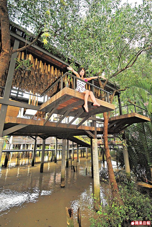 住了兩間特級酒店,不如來個OffBit的特級?這種「特級」不是要你做VIP。它在曼谷市中心,但遠離塵囂,座落在河邊,與OldBangkokInn是同一個老闆,這是一間以竹為主題的環保小酒店BangkokTreeHouse。官方指引乘BTS到Bangna站,換乘的士去碼頭,就可乘GreenFerry到酒店。我們抵達後,居然發現有兩個渡頭,只得泰文,到底邊艘GreenFerry才正確?原來只要打電話給TreeHouse,三分鐘內就會有小快艇來接你,在船上飛馳兩分鐘,抵達一個又浮又飄的竹子「碼頭」。
